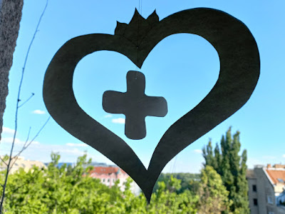 Preto som aj ja vyzdobila náš príbytok symbolom Ježišovho srdca. Vystrihla som ho z papiera a po celý jún nám bude visieť na balkónových dverách. V centre srdca je kríž, ako prejav tej najväčšej lásky k nám. "Srdce, ktoré tak veľmi milovalo ľudí..."